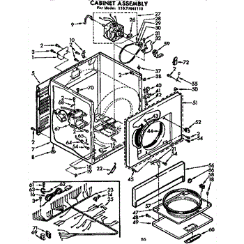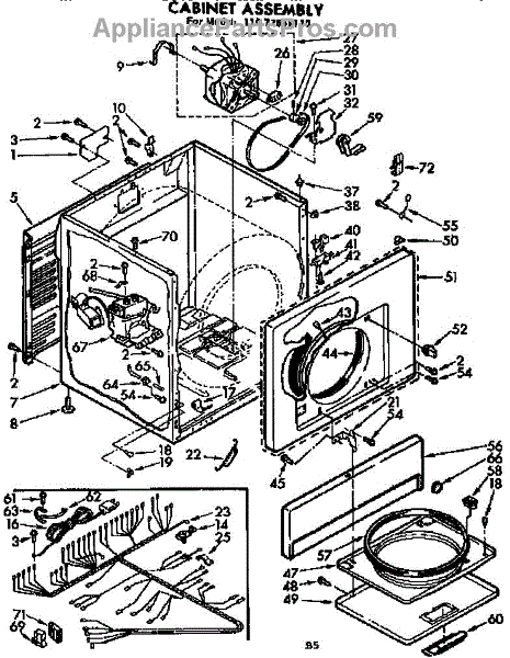 Fits all Whirlpool-made dryers (Whirlpool, Kenmore with prefix 110, Roper, KitchenAid, and Estate). Matching belt 341241 and rear support rollers 349241T. Whirlpool dryer repair manual 677818L.