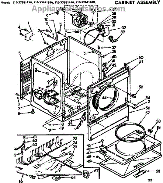 Parts for Sears 11077691410: Cabinet Assembly Parts