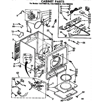 Fits all Whirlpool-made dryers (Whirlpool, Kenmore with prefix 110, Roper, KitchenAid, and Estate). Matching belt 341241 and rear support rollers 349241T. Whirlpool dryer repair manual 677818L.