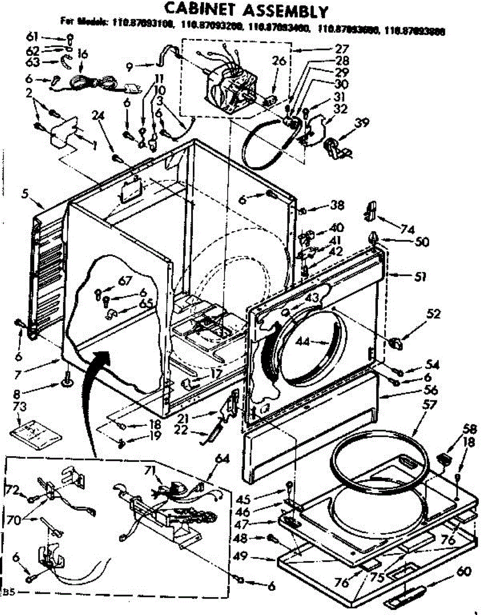 Parts for Sears 11087093400: Cabinet Assembly Parts
