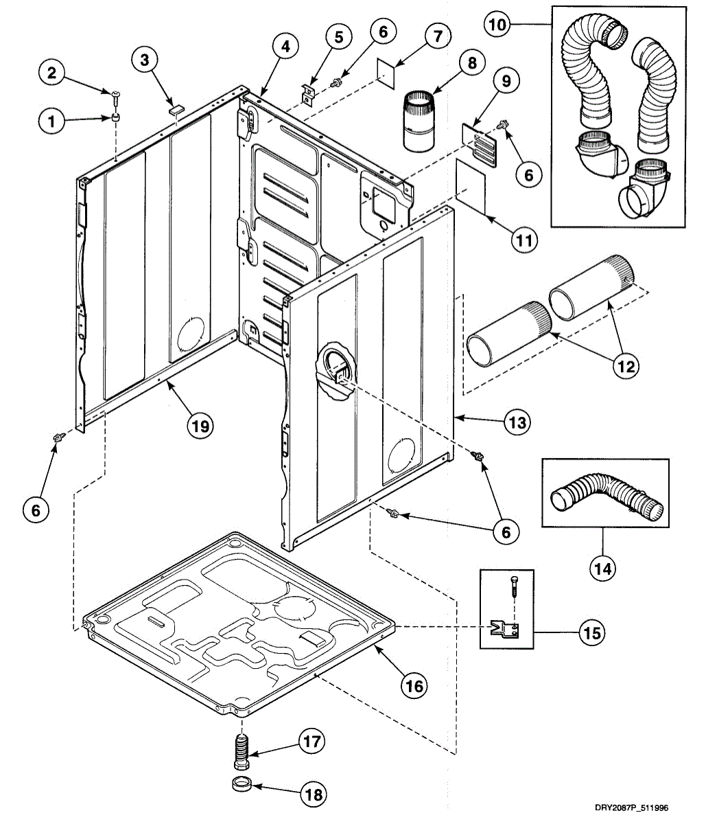 Access cover plate with 3 louvers for dryers. Installs on the front panel to cover service openings. Replace if cracked, broken, or missing.