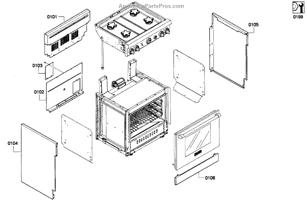Parts for Thermador PRG304GH/01: Cabinet Assy Parts