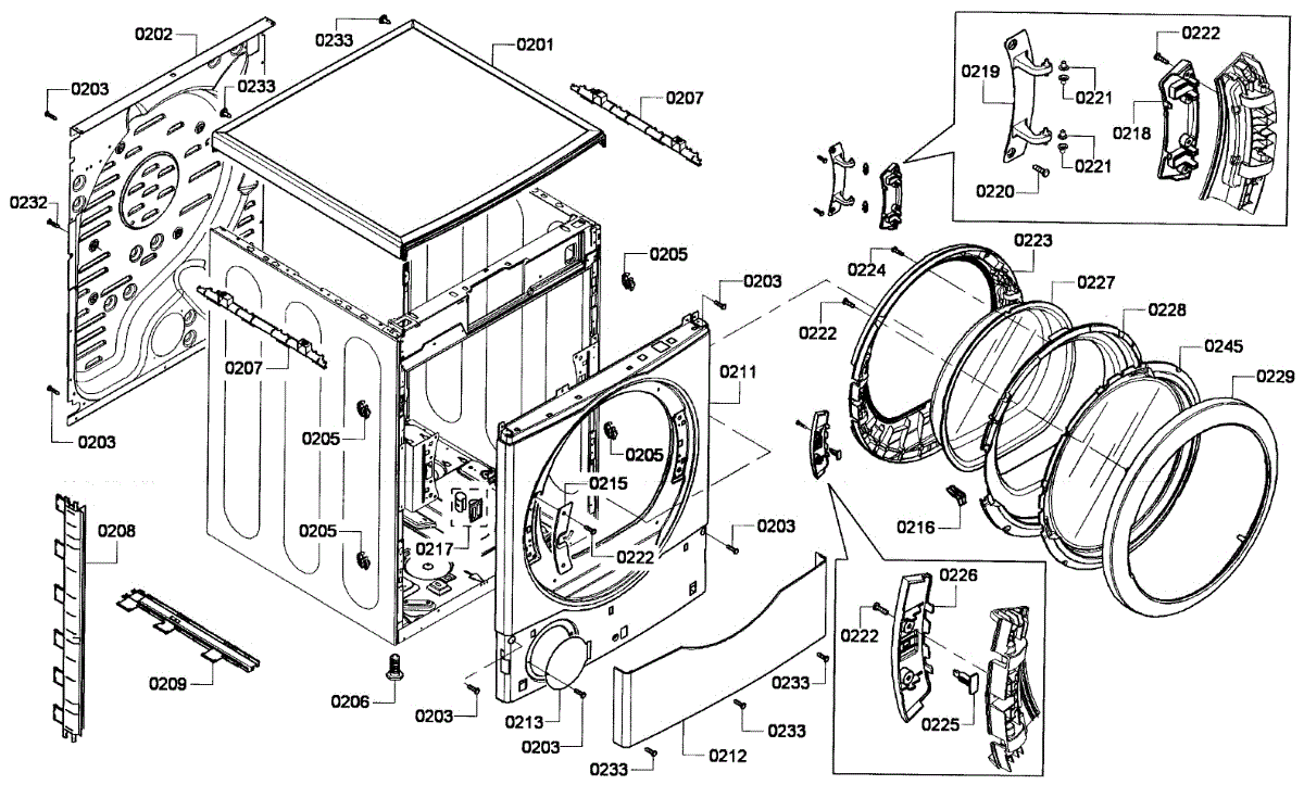 This inner door frame is the metal/plastic support that mounts behind the outer door panel to hold the inner liner, latch, and components in place. Replacing a damaged frame restores proper door alignment and sealing. What it does: