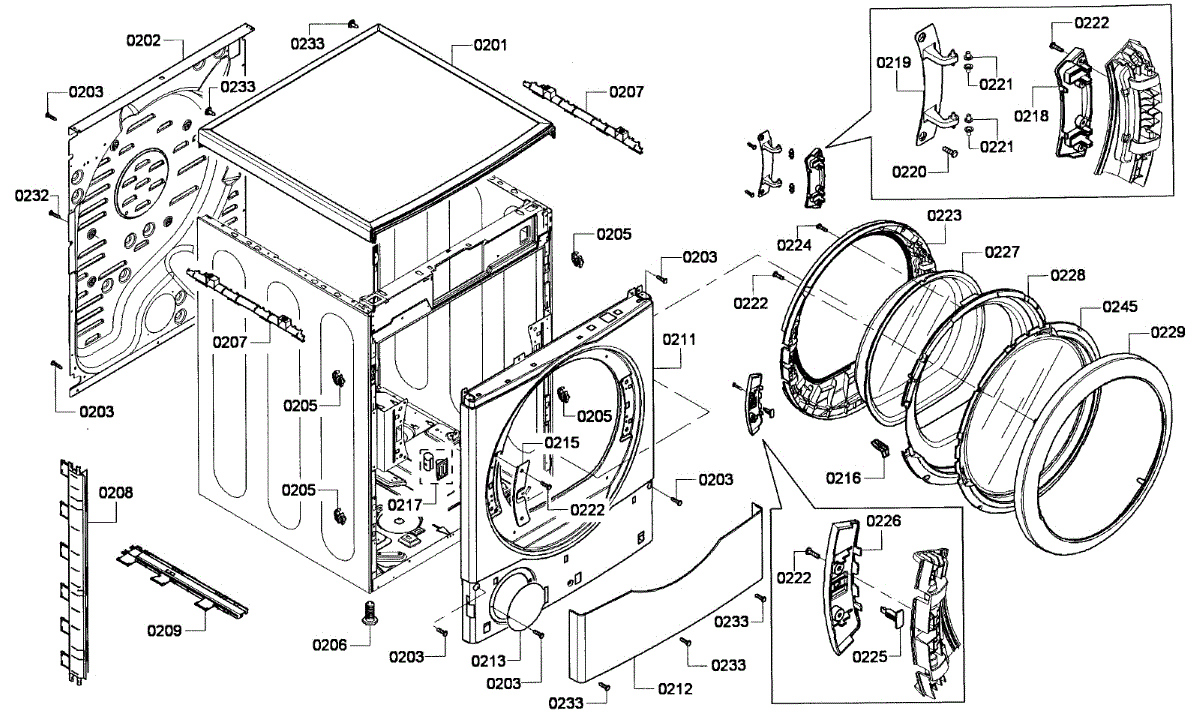 This inner door frame is the metal/plastic support that mounts behind the outer door panel to hold the inner liner, latch, and components in place. Replacing a damaged frame restores proper door alignment and sealing. What it does: