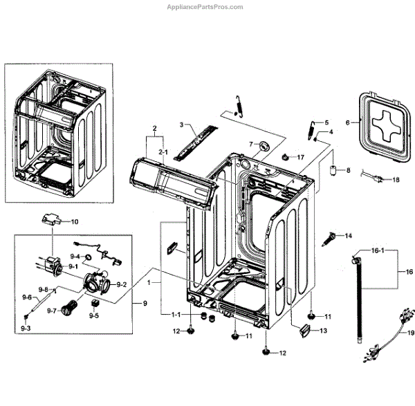 The Washer Assembly Frame is an essential component for maintaining the structural integrity of your Samsung washer. Designed specifically for Samsung washer models, including the BIGBANG and WF363 series, this genuine OEM part ensures a perfect fit and reliable performance. Constructed from durable materials, the assembly frame provides strong support to prevent vibrations and reduce noise during operation. Installing this Washer Assembly Frame restores your appliance's stability, enhancing wash efficiency and extending the lifespan of your washer. As a genuine OEM part, it guarantees compatibility and quality, making it a trustworthy choice for DIY repairs. Whether your original frame is damaged, worn, or broken, the Washer Assembly Frame offers a straightforward solution to get your Samsung washer running smoothly again. Enjoy the peace of mind that comes with using a high-quality, manufacturer-approved part for your appliance repair needs.