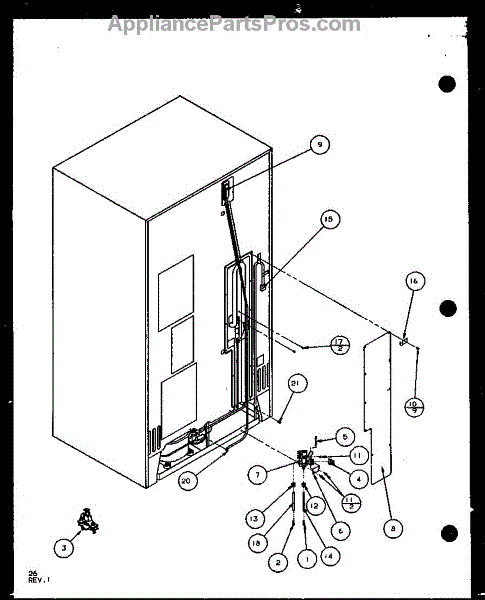 Parts for Amana SLD25JB-P1104009W: Cabinet Back (Sld25j / P1104007w) (Sld25jb / P1104009w) (Sld25jp / P1104011w) (Sld22jb / P1104023w) Parts
