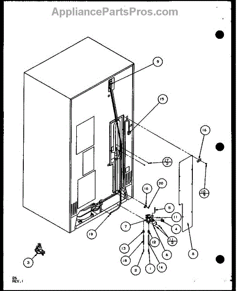 Parts for Amana SXD22J-P1104020W: Cabinet Back (Sxd25j / P1104001w) (Sxd25jb / P1104003w) (Sxd25jp / P1104005w) Parts