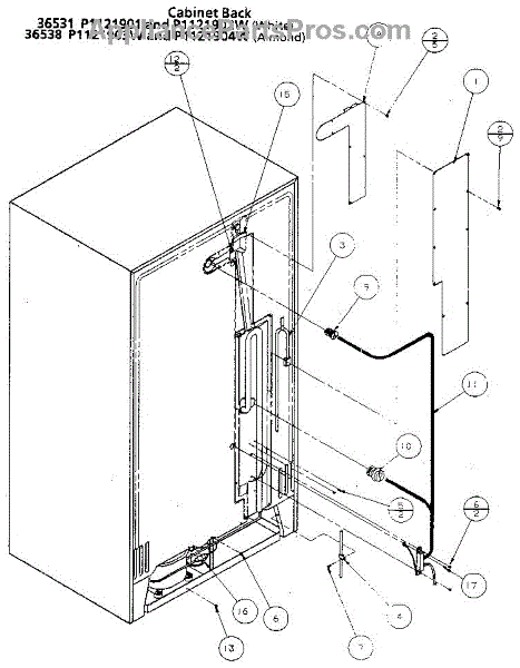 Parts for Amana 36538-P1121903W: Cabinet Back Parts
