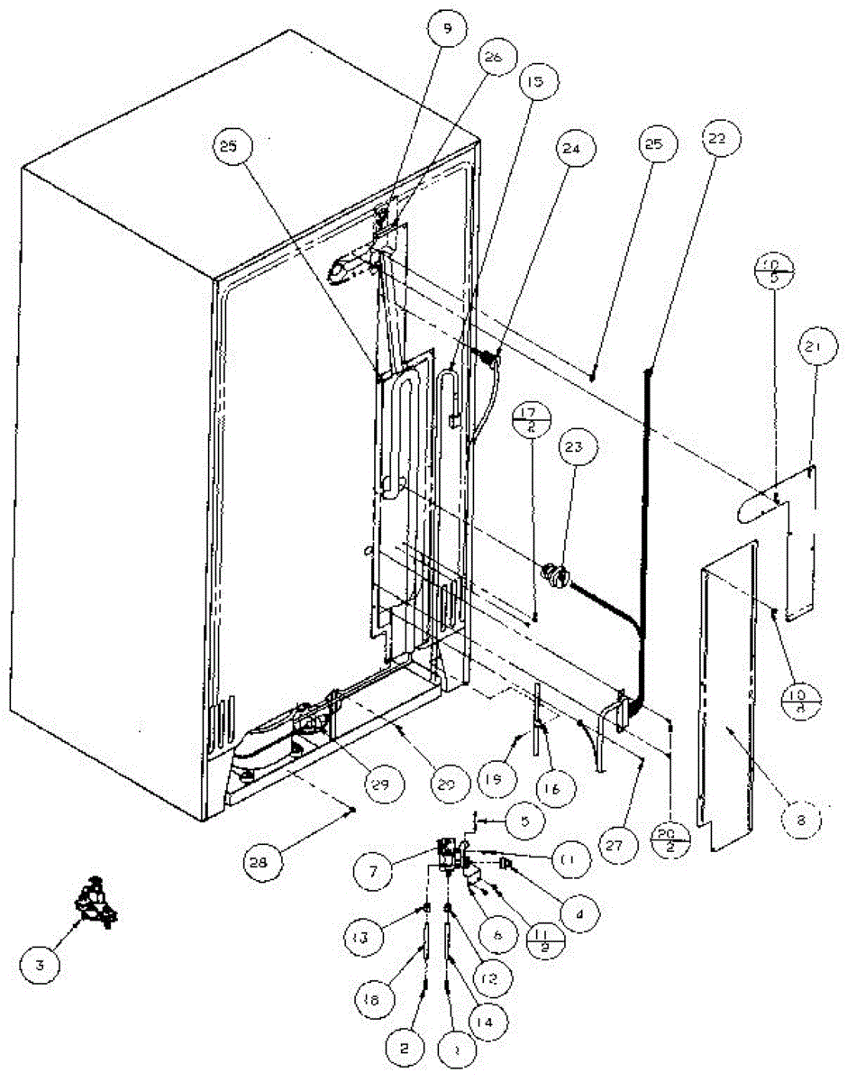 Parts for Amana 36761-P1135801W: Cabinet Back Parts