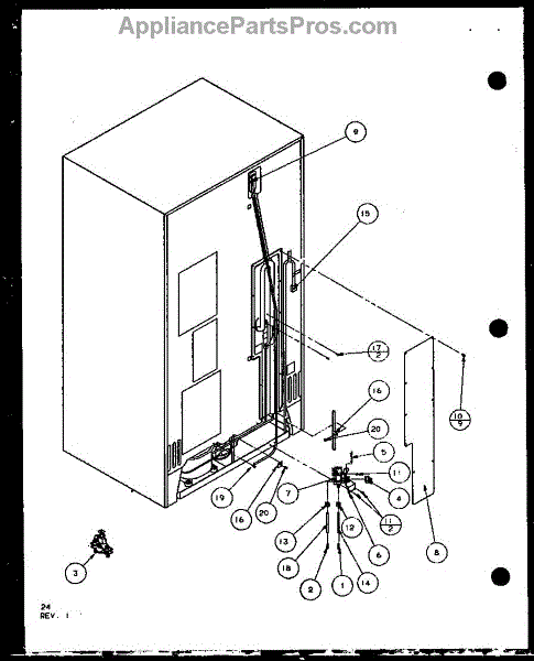 Parts for Amana SCD25J-P7870115W: Cabinet Back (Scd25j / P7870115w) (Scd25jb / P7870116w) (Scd25jp / P7870117w) Parts