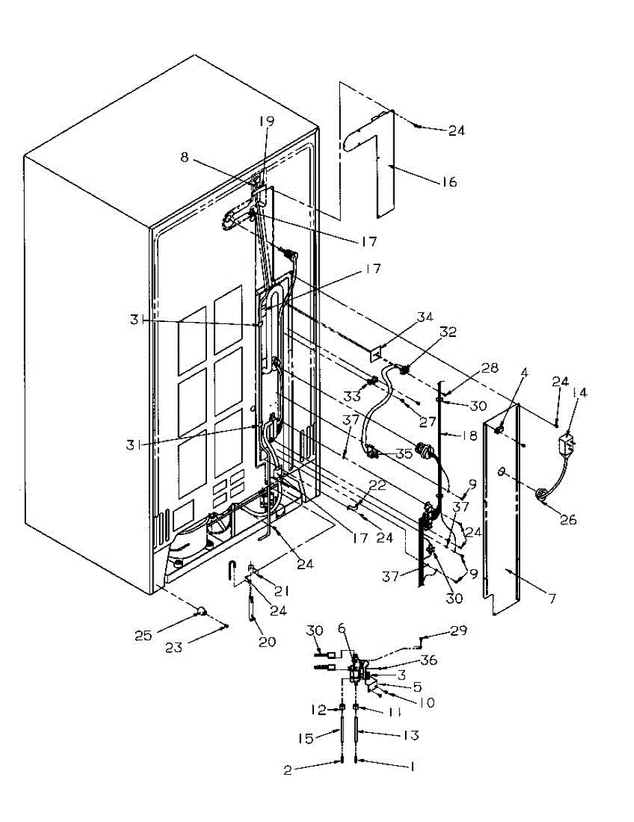 Parts for Amana SRD325S5W-P1199401WW: Cabinet Back Parts