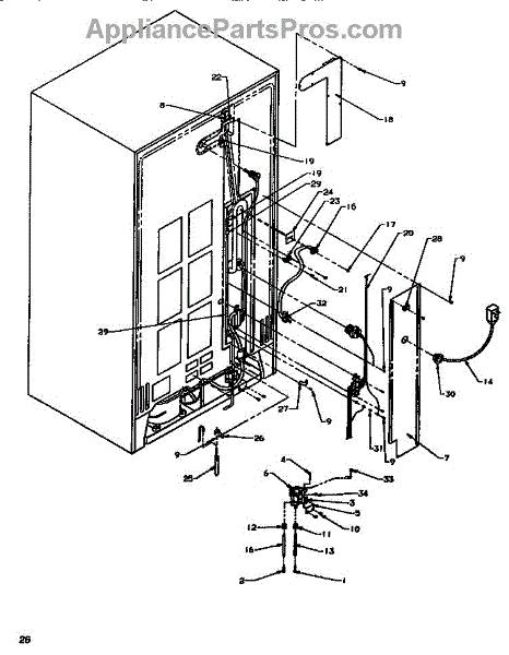 Parts for Amana SRDE520SW-P1183101WW: Cabinet Back Parts