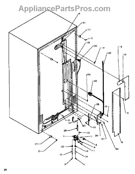 Parts for Amana SSD25N5L-P1178903WL: Cabinet Back Parts