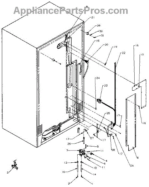Parts for Amana SXD27N-P1162408W: Cabinet Back Parts