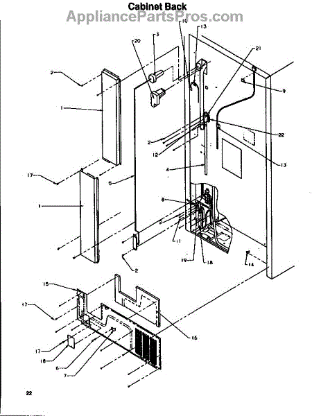 Parts for Amana TG18S3L-P1194601WL: Cabinet Back Parts