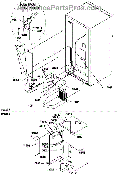 Parts for Amana THI21TE-P1302602WE: Cabinet Back Parts