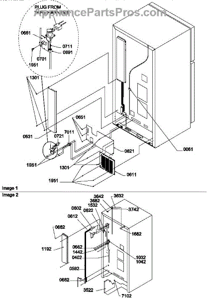 Parts for Amana TM17TBW-P1305901WW: Cabinet Back Parts