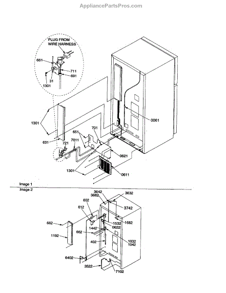 Parts for Amana TR18V2W-P1315705WW: Cabinet Back Parts