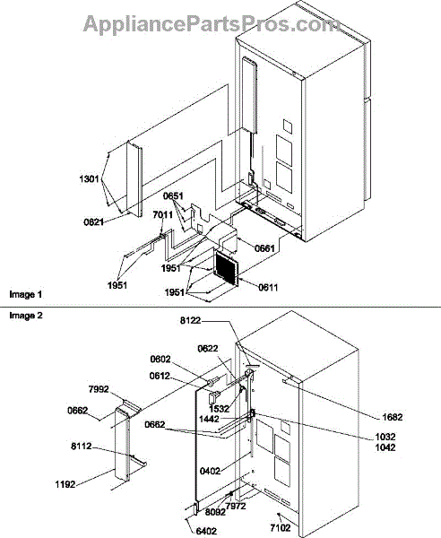 Parts for Amana TR521VW-P1322601WW: Cabinet Back Parts