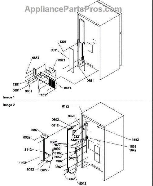 Parts for Amana TR525SL-P1182803WL: Cabinet Back Parts