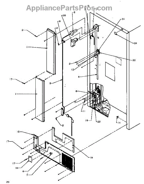 Parts for Amana TX25R4L-P1175402WL: Cabinet Back Parts