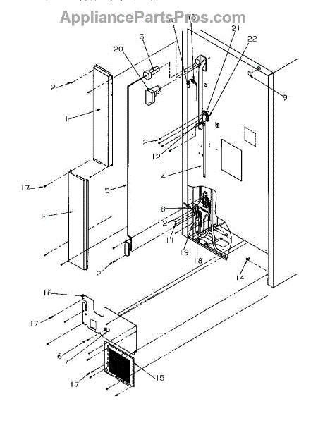 Parts for Amana TY18S4W-P1195303WW: Cabinet Back Parts