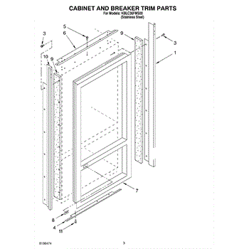This screw is used to secure the handle end cap to the center of the door. The screw size measures 8-18 x 1/2 inches.