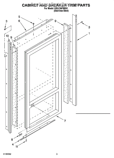 Parts for Kitchenaid KBLC36FMS01: 02 - Cabinet And Breaker Trim Parts