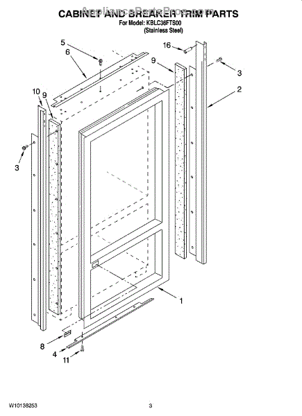 Parts for Kitchenaid KBLC36FTS00: 02 - Cabinet And Breaker Trim Parts