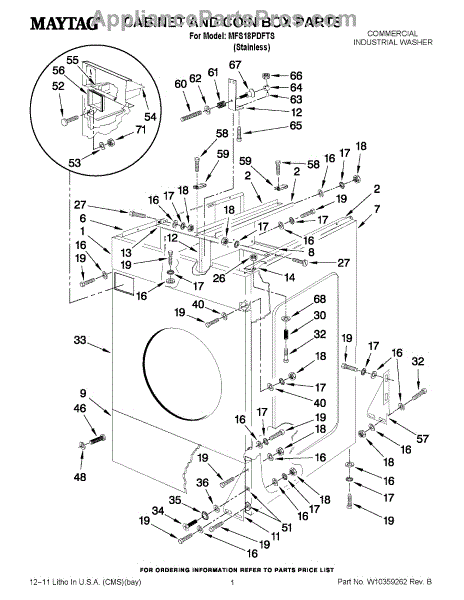 Parts for Maytag MFS18PDFTS: 01 - Cabinet And Coin Box Parts