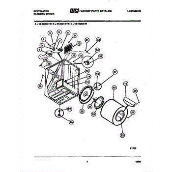 Parts for Frigidaire DEA501G1J: 02 - Cabinet And Component Parts