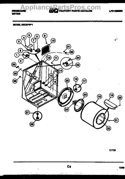 The Drum Bearing Bracket is an OEM replacement part for Frigidaire dryers. It holds and supports the drum bearing, which allows the dryer drum to spin smoothly during the tumbling and drying cycle. Causes of failure can be cracking or breaking of the bracket over time due to constant use and stress. Improper installation that puts strain on the bracket may also lead to issues. Symptoms of a bad drum bearing bracket include: