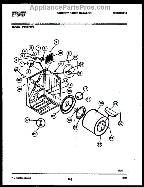 Parts for Frigidaire DECSFW3: 02 - Cabinet And Component Parts