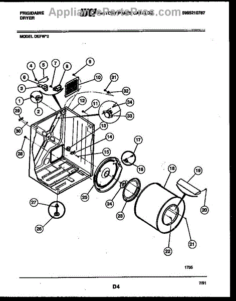 Parts for Frigidaire DEFW2: 02 - Cabinet And Component Parts