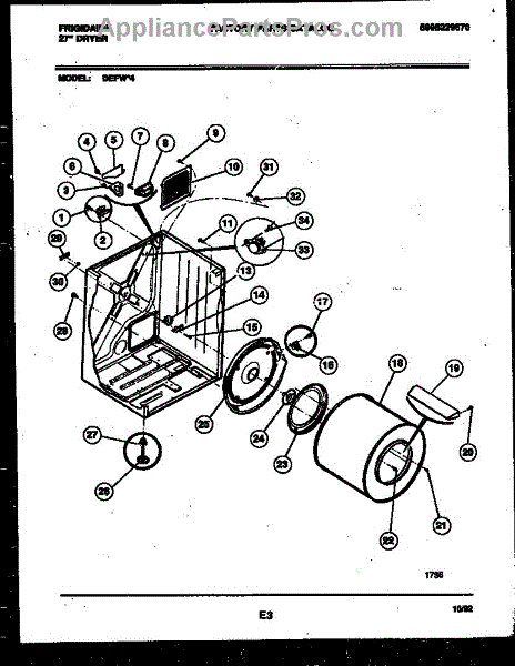 Parts for Frigidaire DEFW4: 02 - Cabinet And Component Parts
