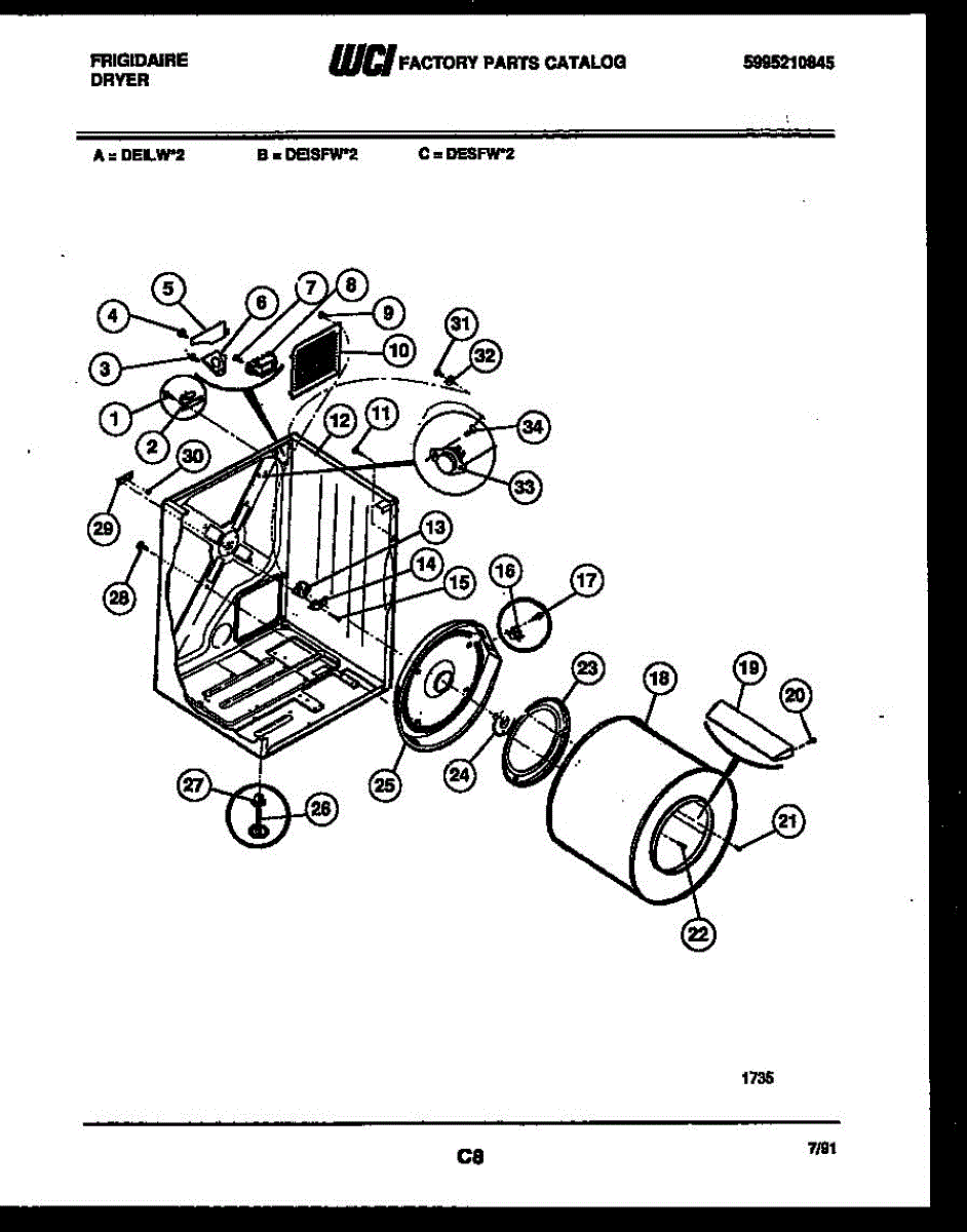 Parts for Frigidaire DEILW2: 02 - Cabinet And Component Parts