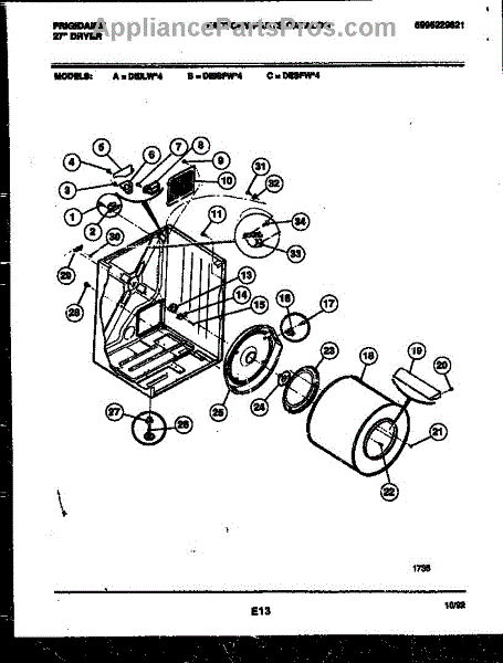 Parts for Frigidaire DESFW4: 02 - Cabinet And Component Parts