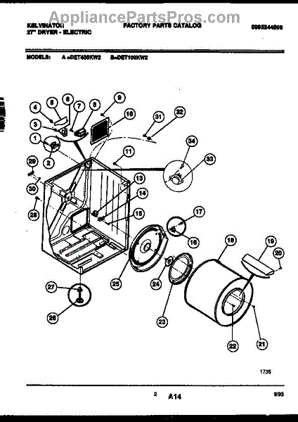 Parts for Frigidaire DET400KW2: 02 - Cabinet And Component Parts