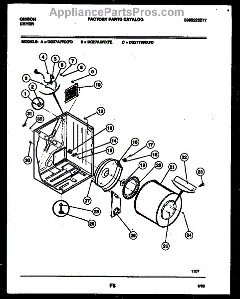 Parts for Frigidaire DG27A5WXFE: 02 - Cabinet And Component Parts
