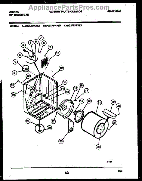 Parts for Frigidaire DG27T3WAFA: 02 - Cabinet And Component Parts