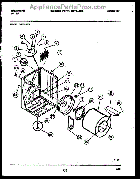 Parts for Frigidaire DG5520RW1: 02 - Cabinet And Component Parts
