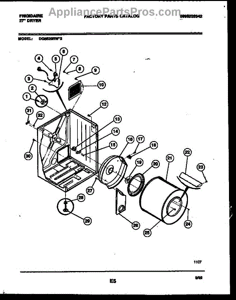 Parts for Frigidaire DG5520RW2: 02 - Cabinet And Component Parts