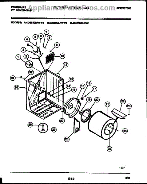 The Drum Bearing Bracket is an OEM replacement part for Frigidaire dryers. It holds and supports the drum bearing, which allows the dryer drum to spin smoothly during the tumbling and drying cycle. Causes of failure can be cracking or breaking of the bracket over time due to constant use and stress. Improper installation that puts strain on the bracket may also lead to issues. Symptoms of a bad drum bearing bracket include: