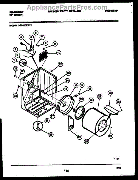 Parts for Frigidaire DG6420RW2: 02 - Cabinet And Component Parts