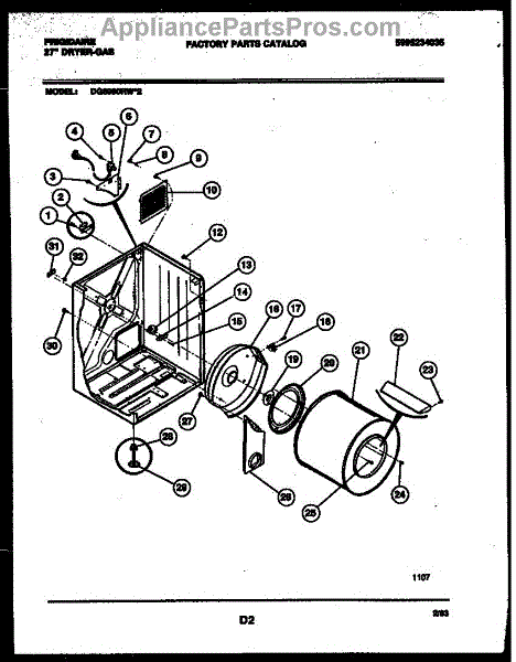 The Drum Bearing Bracket is an OEM replacement part for Frigidaire dryers. It holds and supports the drum bearing, which allows the dryer drum to spin smoothly during the tumbling and drying cycle. Causes of failure can be cracking or breaking of the bracket over time due to constant use and stress. Improper installation that puts strain on the bracket may also lead to issues. Symptoms of a bad drum bearing bracket include: