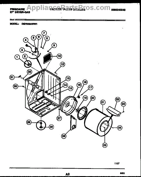 Parts for Frigidaire DG7000ADD1: 02 - Cabinet And Component Parts