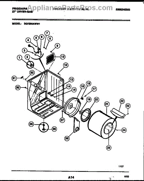 Parts for Frigidaire DG7200AWW1: 02 - Cabinet And Component Parts