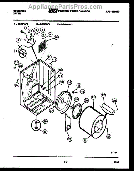 The Drum Bearing Bracket is an OEM replacement part for Frigidaire dryers. It holds and supports the drum bearing, which allows the dryer drum to spin smoothly during the tumbling and drying cycle. Causes of failure can be cracking or breaking of the bracket over time due to constant use and stress. Improper installation that puts strain on the bracket may also lead to issues. Symptoms of a bad drum bearing bracket include: