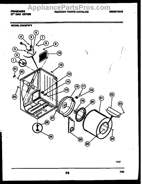 The Drum Bearing Bracket is an OEM replacement part for Frigidaire dryers. It holds and supports the drum bearing, which allows the dryer drum to spin smoothly during the tumbling and drying cycle. Causes of failure can be cracking or breaking of the bracket over time due to constant use and stress. Improper installation that puts strain on the bracket may also lead to issues. Symptoms of a bad drum bearing bracket include: