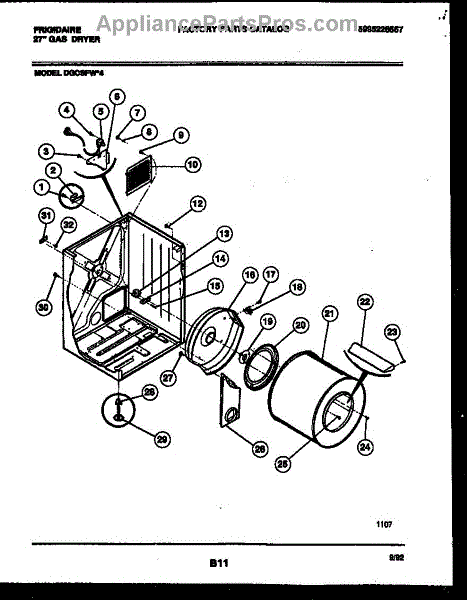 The Drum Bearing Bracket is an OEM replacement part for Frigidaire dryers. It holds and supports the drum bearing, which allows the dryer drum to spin smoothly during the tumbling and drying cycle. Causes of failure can be cracking or breaking of the bracket over time due to constant use and stress. Improper installation that puts strain on the bracket may also lead to issues. Symptoms of a bad drum bearing bracket include: